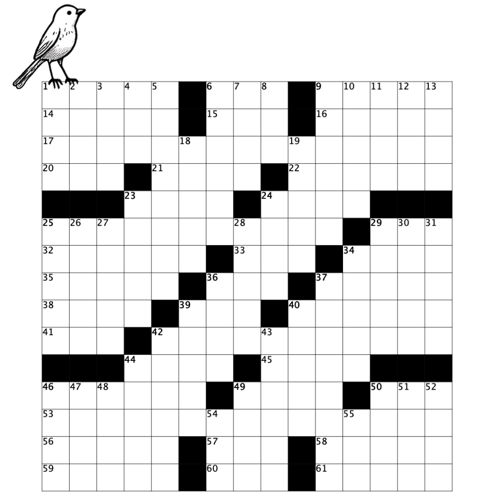 “58-Across: Bird that may be part of a murder (but only with probable caws)”