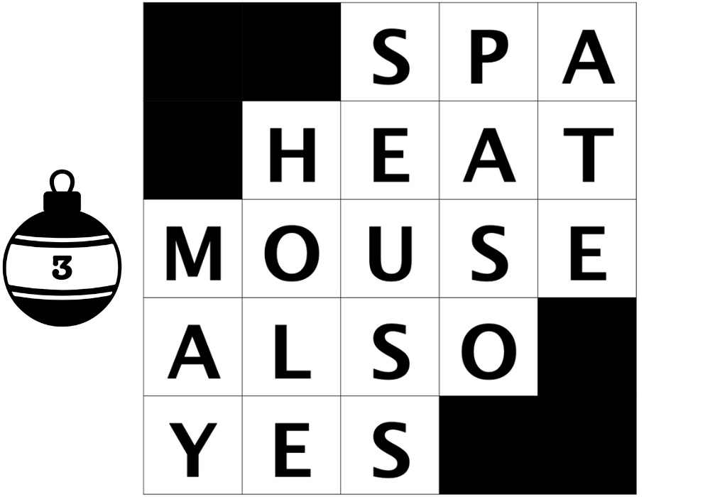 Happy holidays! Here are the answers to this year’s holiday mini crosswords. If you enjoyed these, check out more puzzles on this site.
